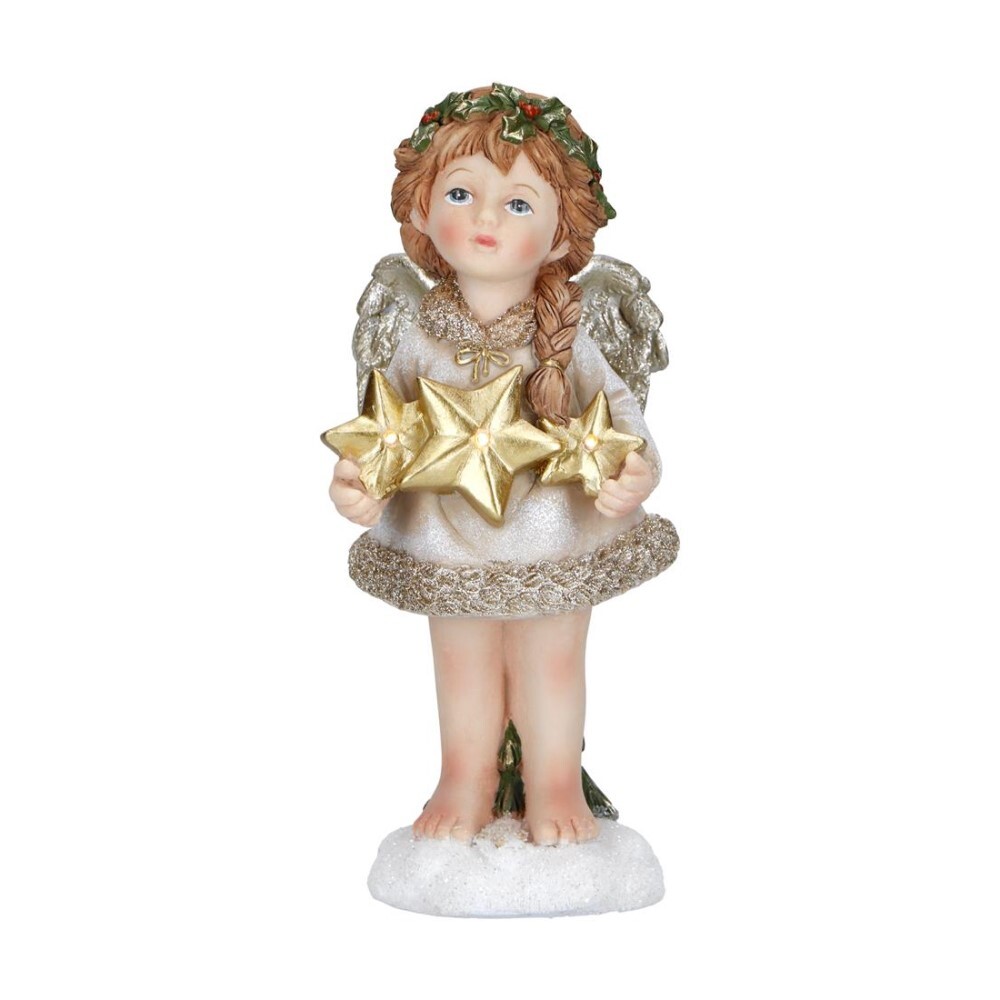 Dekorace - figurka Anděla s hvězdičkami 22 cm s LED světlem