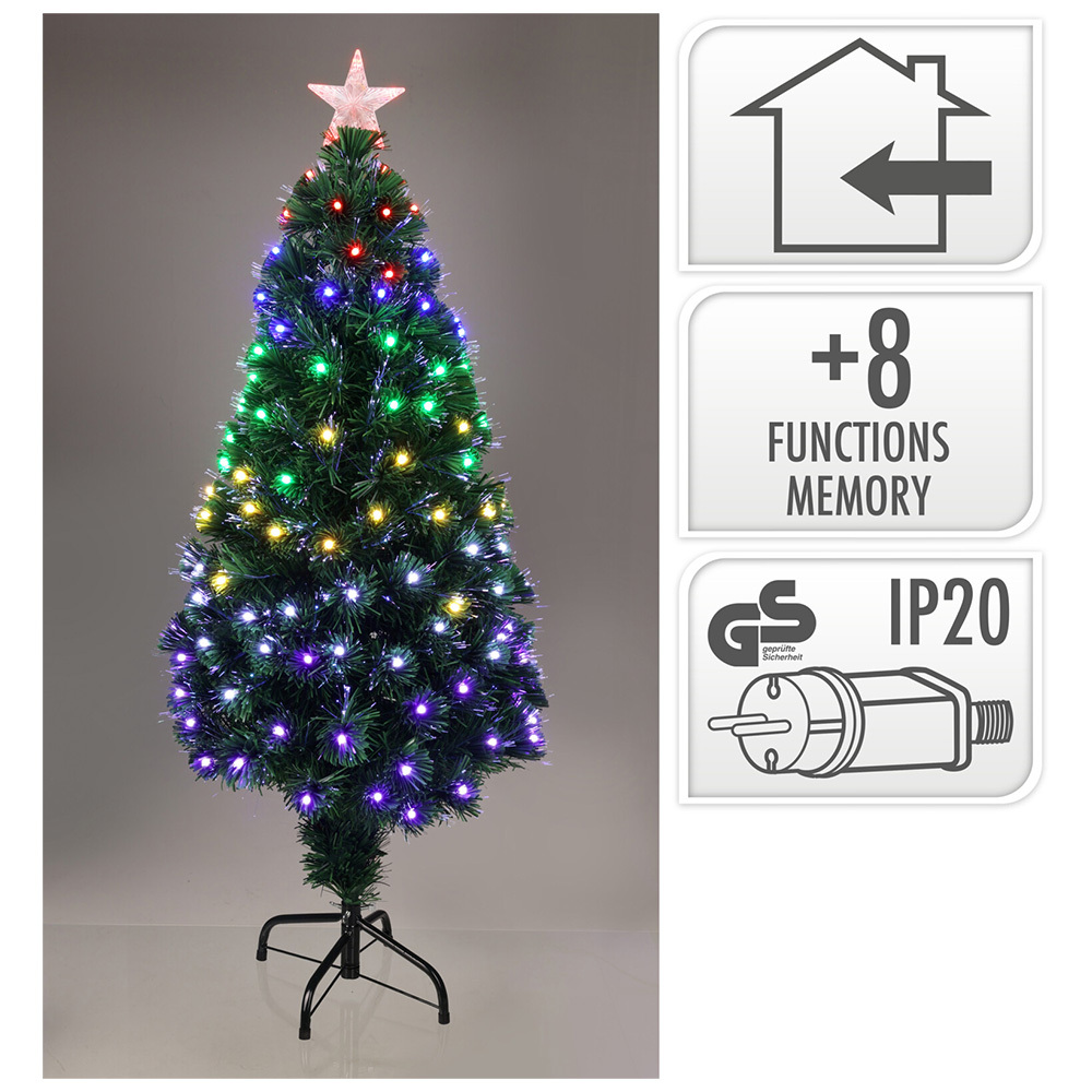 Svítící vánoční stromek s hvězdou na vrcholu, vysoký 120 cm, s kovovým stojanem.