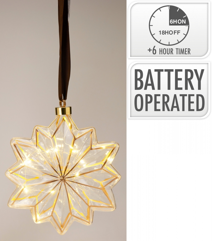 Tato krásná koule je vyrobena ze skla a vybavena LED svítidlem s časovačem, které umožňuje automatické zapínání a vypínání světla.