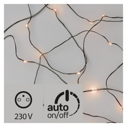barva drátu: zelená|barva světla: vintage|časovač: ano|dálkový ovladač: ne|délka přívodu: 5 m|funkce: svítí|krytí: IP44|LED mezera: 10 cm|materiál: kov|možnost propojení: ne|počet LED: 40|použití: venkovní i vnitřní|příkon: 2,4 W|prodejní obal: 1 ks, krabice|produkt: nano řetěz|pro výšku stromu: 100 cm|rozměr: 4 m|tvar: nano|typ napájení: síťový adaptér|velikost LED: 3 mm (nano)|vstupní napětí: 230 V AC|výstupní napětí: neuvádí se|záruční doba: 2 roky|životnost: 10 000 hodin