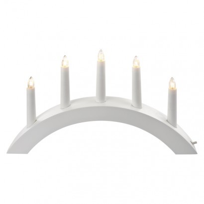 Svícen na 5× žárovičku E10 dřevěný bílý, oblouk, 40×28cm, v.