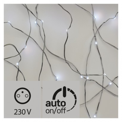 LED vánoční nano řetěz stříbrný, 10m, venkovní, stud.b.,čas.