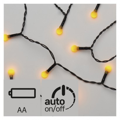 LED vánoční řetěz – kuličky, 2× AA, vnitřní, žlutá, časovač