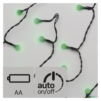 LED vánoční řetěz – kuličky, 2× AA, vnitřní, zelená, časovač