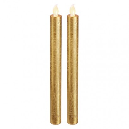 LED svíčky, 25cm, metalické zlaté, 2× AAA, jantarová, 2 ks
