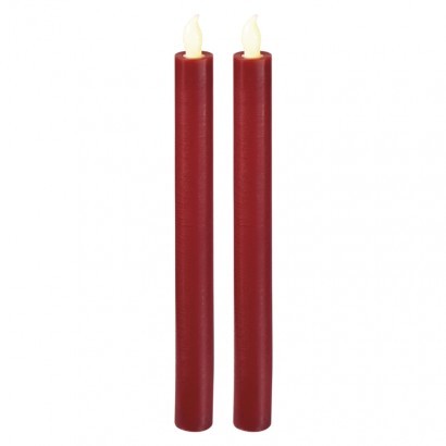 LED svíčky, 25cm, metalické červené, 2× AAA, teplá b., 2 ks