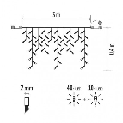 barva drátu: černá|barva světla: teplá bílá|časovač: ano|dálkový ovladač: ne|délka přívodu: 10 cm|funkce: svítí/bliká|krytí: IP44|LED mezera: 10 cm|materiál: guma|možnost propojení: ano|počet LED: 50|použití: venkovní i vnitřní|příkon: 0,9 W|prodejní obal: 1 ks, krabice|produkt: řetěz|pro výšku stromu: neuvádí se|rozměr: 3 × 0,4 m|tvar: klasický|typ napájení: síťový adaptér|velikost LED: 7 mm|vstupní napětí: 230 V AC|výstupní napětí: neuvádí se|záruční doba: 2 roky|životnost: 10 000 hodin