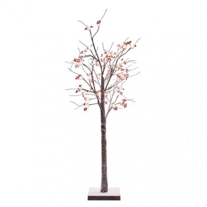 LED svítící stromek s bobulemi, 120 cm, venkovní i vnitřní, teplá bílá, časovač