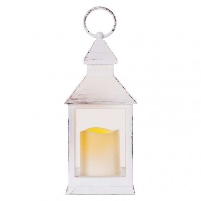 LED dekorace – lucerna antik bílá blikající, 3x AAA, vnitřní, vintage, časovač
