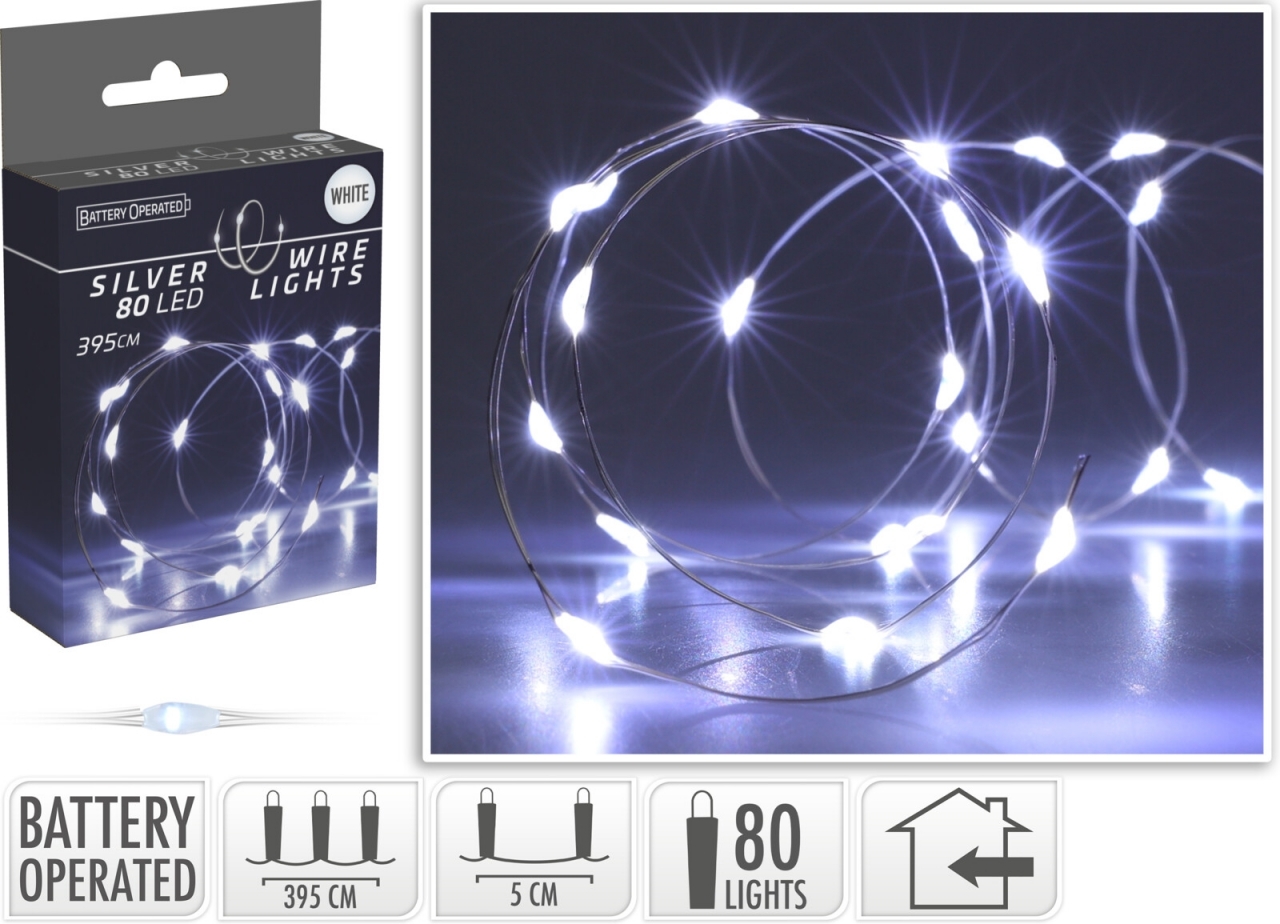 Barva drátku: stříbrnáNapájení: 3x AA baterie - nejsou součástí výrobkuVhodné pouze pro vnitřní použitíBarva: studená bílá