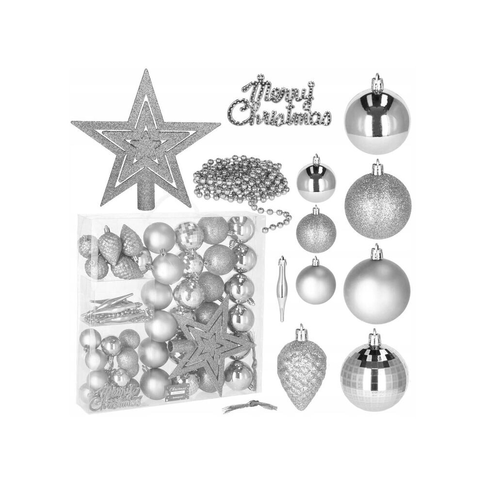 Maxi 53 dílná sada vánočních ozdob stříbrná