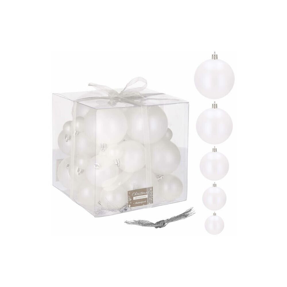 Vánoční baňky bílé - 5 velikostí, sada 37ks