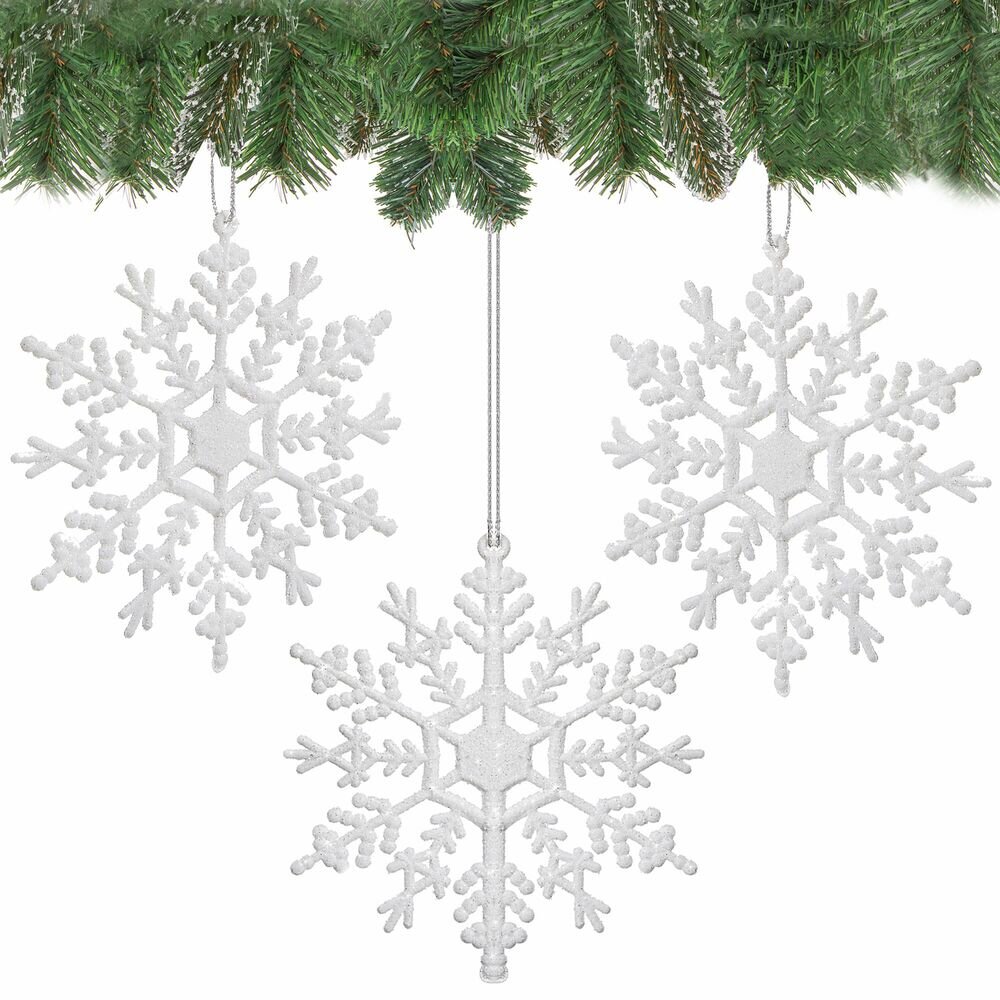 - Elegantní design: Bílé vločky zdobené třpytkami dodají svátečnímu interiéru nezaměnitelný lesk a kouzlo.