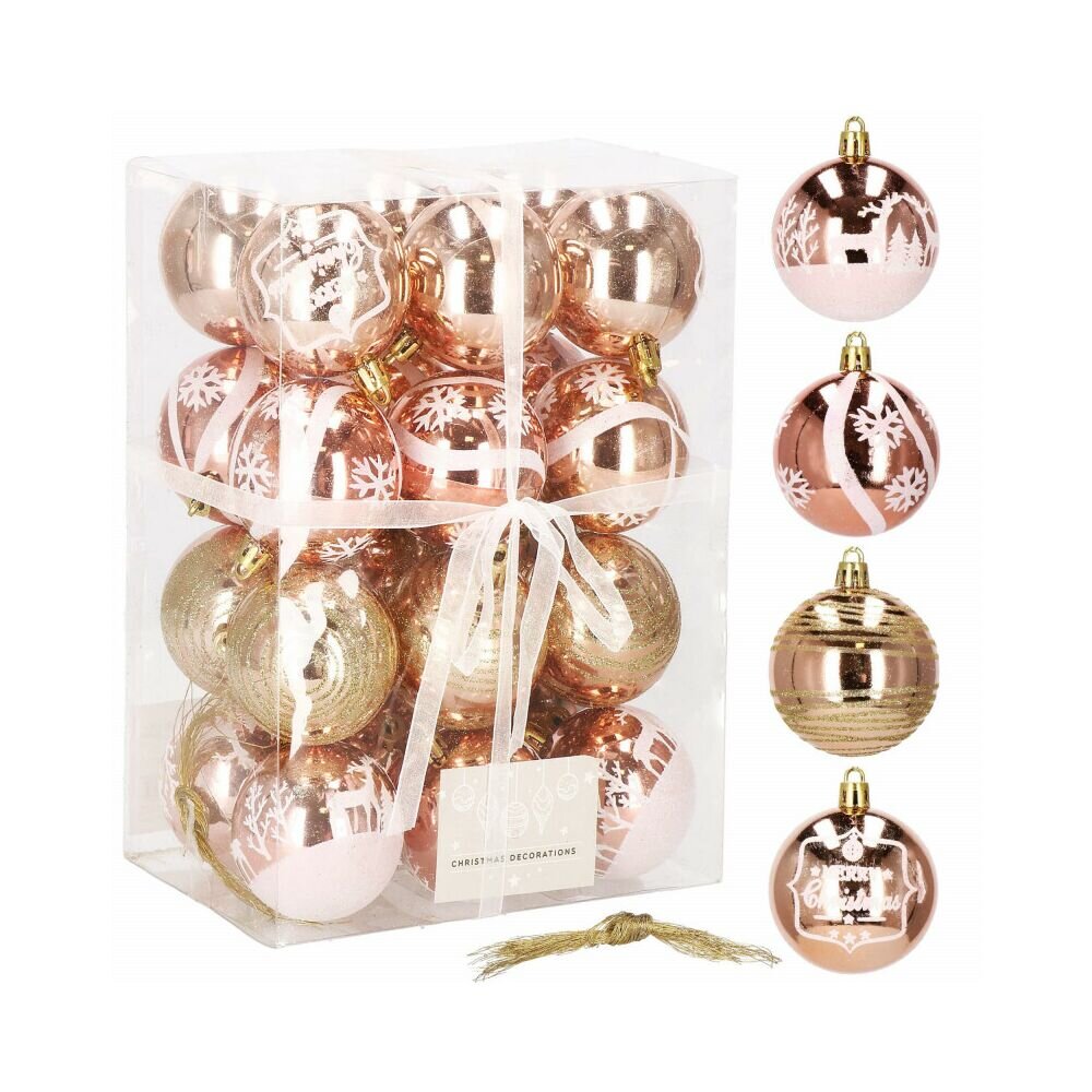 Sada 24 ks zlatých baněk na stromeček se čtyřmi různými vzory. číst celé