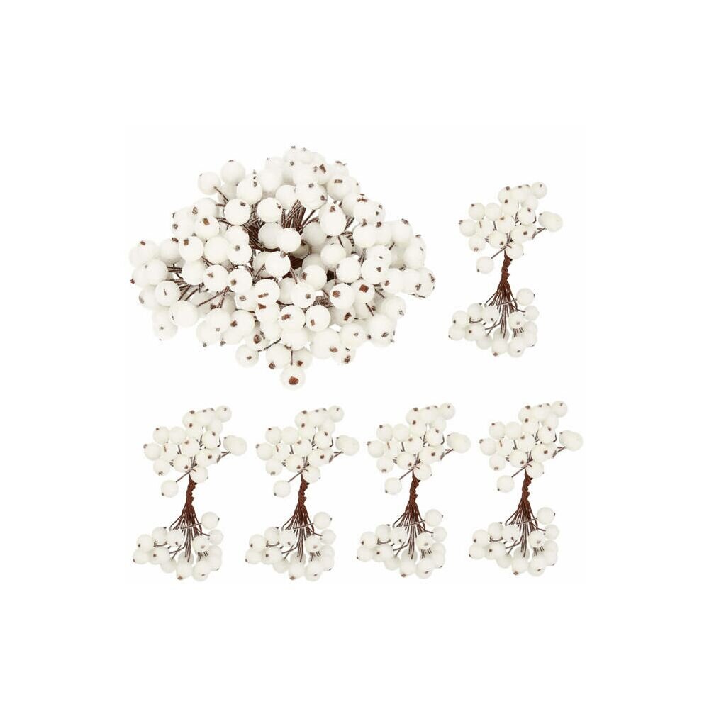 Vánoční jeřabiny zmrzlé bílé sada 200ks