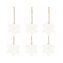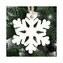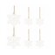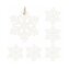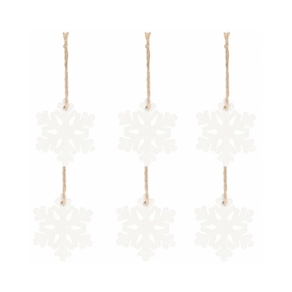 Sada 6ks dřevěných ozdob s provázkem na zavěšení. Vzor sněhové vločky, bílá barva, výška 4 cm, přírodní materiál, krásné zdobení. Ideální k výzdobě stromečků nebo jako vánoční dekorace.