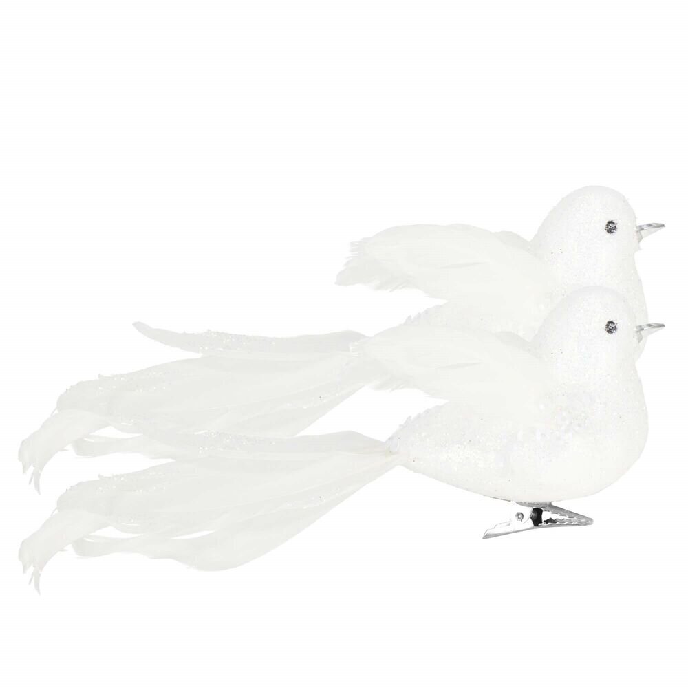 Tato sada obsahuje 2 ozdoby ve tvaru roztomilých ptáčků v jemné bílé barvě, které jsou pokryté třpytivým povrchem. Díky praktickému klipu je jejich zavěšení na stromeček nebo jinou dekoraci velmi snadné a rychlé. Vyrobeny z nerozbitného materiálu, umožňují dlouhodobé používání bez obav z poškození. S rozměry 15 x 5 cm jsou dostatečně výrazné, aby vynikly, ale zároveň nezatěžují větve stromku.