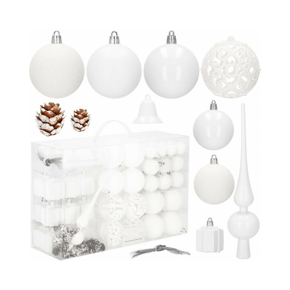 Maxi 100 dílná sada vánočních ozdob bílá se šiškami