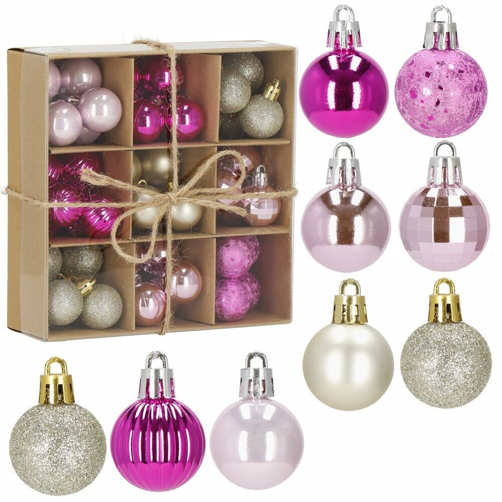 Vánoční baňky růžovo-zlaté mix - 3cm, maxi sada 54ks