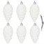 Sada 6 ks bílých ozdob na stromeček s motivem šišky. Výška ozdoby 9,5 cm, matné a třpytivé provedení, poutko na zavěšení, nerozbitný plastový materiál. Ideální k výzdobě stromečku nebo jako vánoční dekorace. Zdarma provázky pro snadné zavěšení.