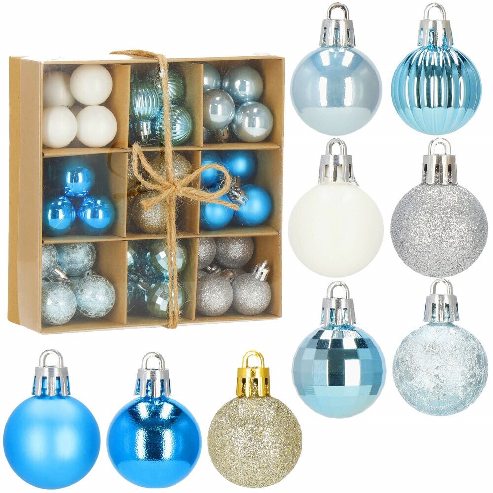 Vánoční baňky modro-stříbrné mix - 3cm, maxi sada 54ks