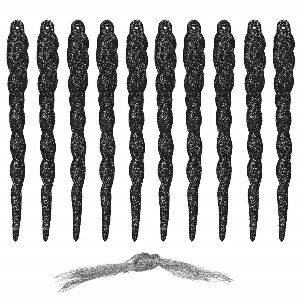 Sada 10ks černých rampouchů s provázkem na zavěšení. Výška 12,5 cm, nerozbitný, odolný materiál, třpytivý vzhled. Krásné budou jako ozdoba na vánoční stromeček nebo jako vánoční dekorace. číst celé