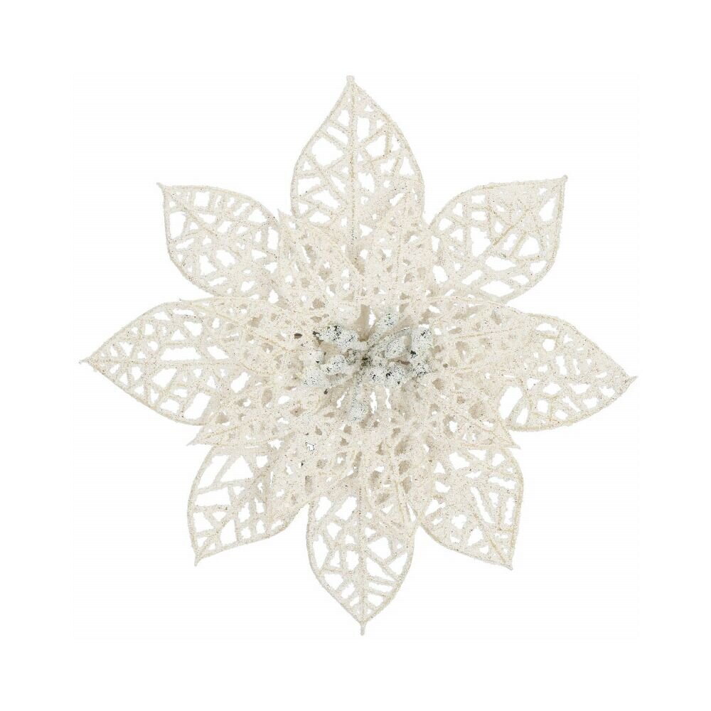 Umělý květ růže s klipem dokonale doplní vánoční výzdobu. Detailně prolamovaný vzor, elegantní třpytky, spodní klip pro snadné uchycení. Velikost 11x11 cm, bílá barva. číst celé