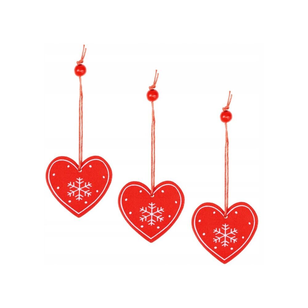 Vánoční ozdoby - Srdce s vločkami, sada 3ks