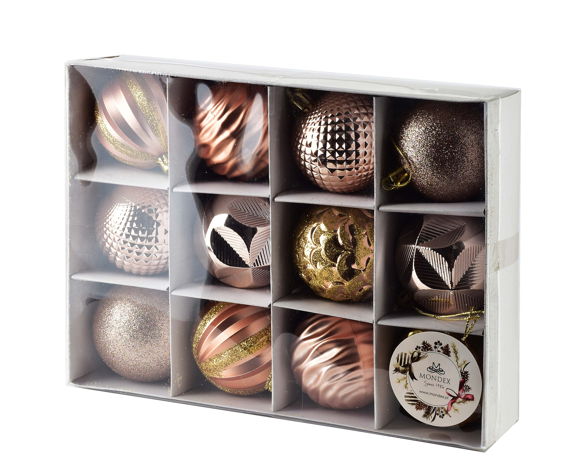 Komplet 12 bombek SANTA LILA w kolorze miedzianym to elegancka propozycja, która wniesie ciepło i wyrafinowany charakter do świątecznych dekoracji. Klasyczne kuliste bombki o średnicy 6 cm zostały wykonane z trwałego tworzywa sztucznego, co zapewnia lekkość i odporność na uszkodzenia. Ich metaliczny miedziany odcień pięknie odbija światło i doskonale komponuje się zarówno z naturalnym zielonym igliwiem, jak i nowoczesnymi aranżacjami w stylu glamour czy boho. Zestaw zapakowany jest w estetyczne opakowanie, idealne również na świąteczny prezent.