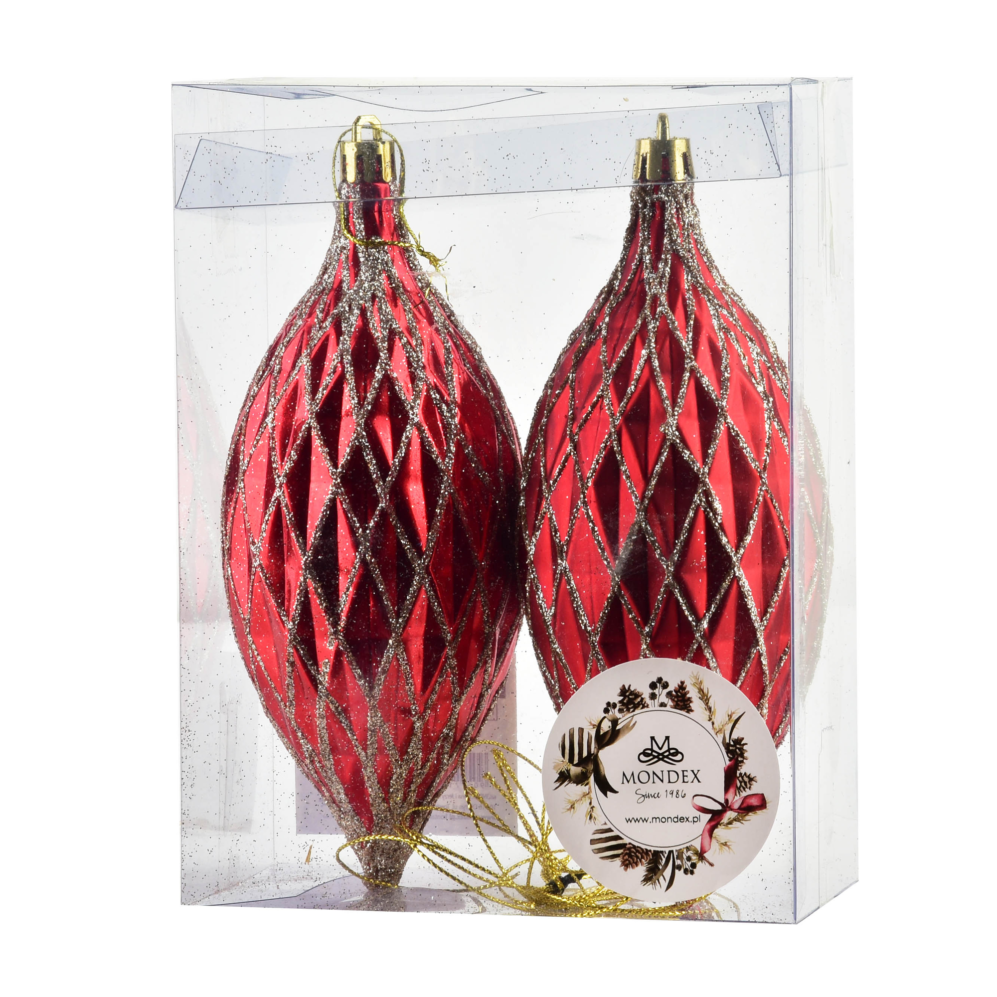 SANTA LILA . Komplet 2 bombek w kolorze czerwonymKlasyka i trwałość w świątecznym styluWprowadź do swojego wnętrza blask i elegancję z pomocą bombek SANTA LILA. Zestaw zawiera 2 efektowne bombki wykonane z trwałego tworzywa sztucznego, w pięknym złotym kolorze, który idealnie wpisuje się w świąteczny klimat.Czerwony kolor, ponadczasowa elegancjaOdcień, który kojarzy się z ciepłem, światłem i klasyką świąt. Pięknie komponuje się z zielenią choinki i innymi dekoracjami.Trwałe tworzywo sztuczne. Bezpieczeństwo i wygodaIdealne rozwiązanie dla domów z dziećmi czy zwierzętami . bombki są lekkie i nietłukące. Komplet 2 sztuk . dopełnienie aranżacjiDoskonałe jako akcent lub uzupełnienie większej kompozycji . w stroikach, wieńcach, dekoracjach stołowych.Uniwersalna estetykaPasują do wnętrz klasycznych, glamour i nowoczesnych . idealne do choinki, kominka czy świątecznych instalacji DIY.Gotowe do zawieszeniaBombki posiadają praktyczne zawieszki, dzięki czemu możesz od razu udekorować nimi wybrane miejsce.