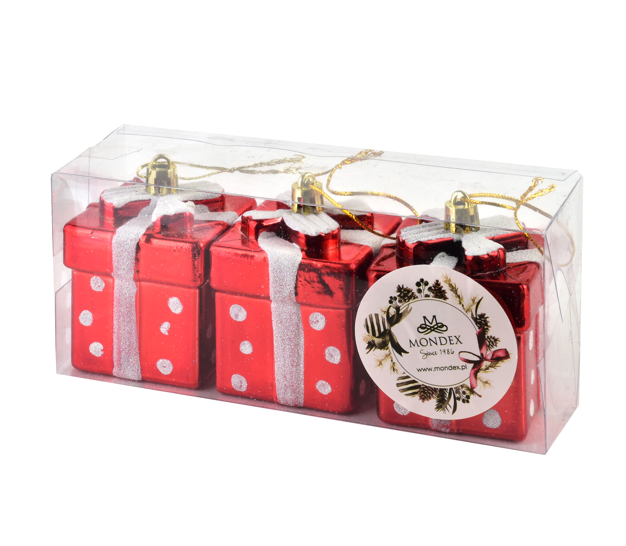 SANTA LILA Komplet 3 bombek prezenty 5x5 x5cm