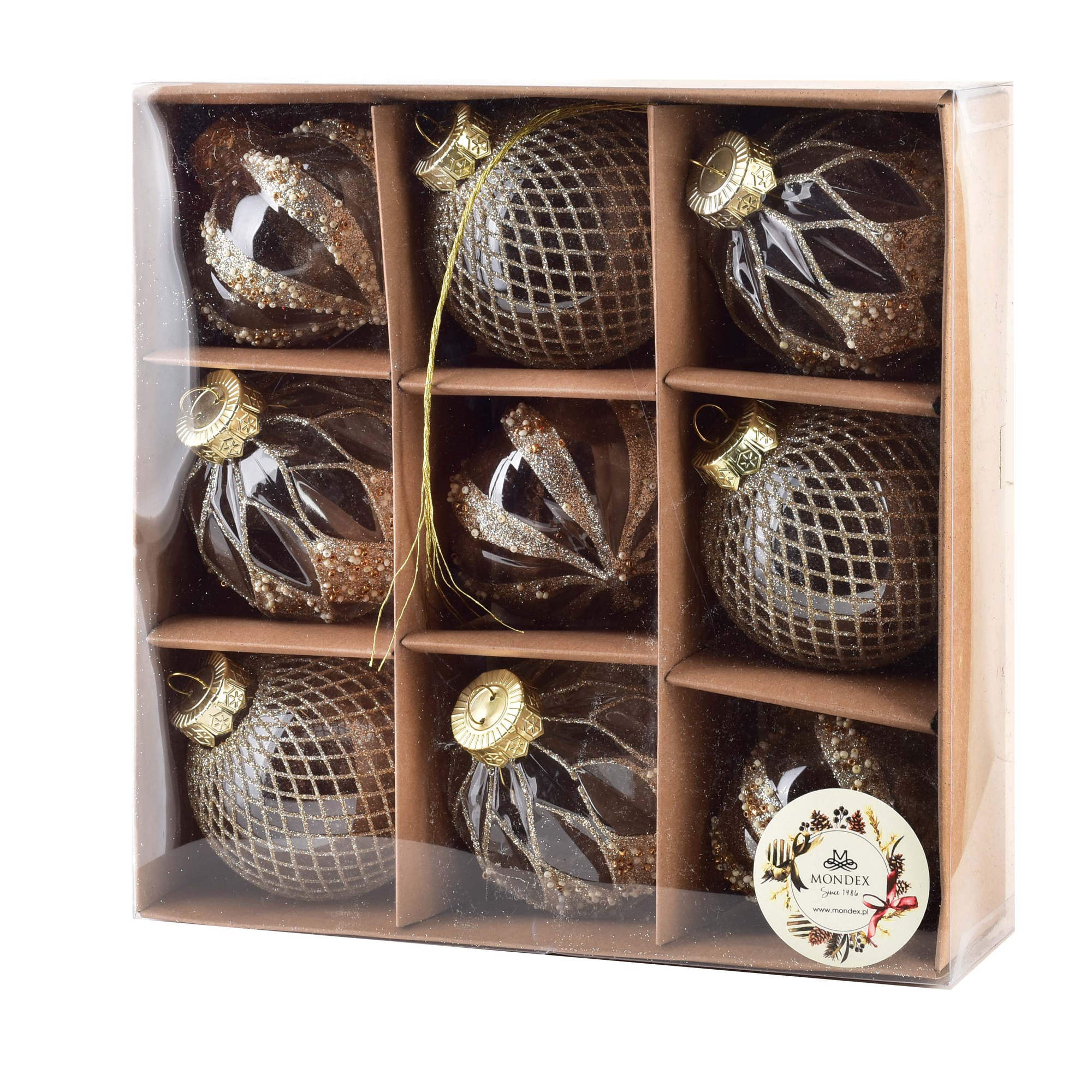 SANTA LILA. Komplet 9 bombek w kolorze szampańskimSzlachetność i blask w świątecznym wydaniuDodaj swojej choince wyjątkowego charakteru dzięki zestawowi bombek SANTA LILA w eleganckim, szampańskim kolorze. Ten komplet łączy klasykę z subtelnym blaskiem, tworząc dekorację, która zachwyci domowników i gości.Najważniejsze cechy i korzyści:Szampański odcień . subtelny luksusDelikatna, połyskująca barwa idealnie komponuje się z tradycyjnymi i nowoczesnymi aranżacjami świątecznymi, nadając wnętrzu elegancji i ciepła.Komplet 9 sztuk . harmonijna dekoracjaZestaw gotowy do udekorowania choinki, wieńca lub stroików . gwarantuje spójny i estetyczny efekt.Starannie wykonane detaleKażda bombka wykonana z dbałością o jakość i trwałość . lekka, ale solidna, odporna na przypadkowe stłuczenie.Uniwersalny stylPasuje zarówno do aranżacji glamour, klasycznych, jak i minimalistycznych . ponadczasowa forma i kolorystyka.Idealne na prezentEleganckie opakowanie sprawia, że zestaw świetnie nadaje się jako upominek świąteczny.