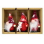 Pletení skřítci s vousy a s poutky na zavěšení v červebílém barevné kombinaci balené 3 ks v krabičce s průhledným okýmkem a s kostkovanou mašlí. Vhodné jako dekorace na vánoční stromek.