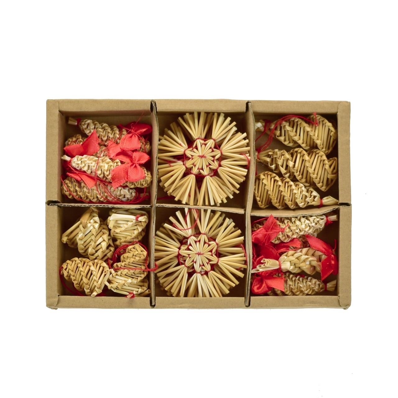 Objevte kouzlo sváteční atmosféry s naším setem slaměných ozdob vrtulek! Tento úchvatný set, který se pyšní přírodní barvou, je zdoben červeným prošíváním a mašličkami, což dodává jedinečný dotek tradičnímu vánočnímu dekorování. Obsahuje celkem 27 ozdob, které oživí váš domov a zpříjemní každou sváteční chvíli. V našem balení najdete: