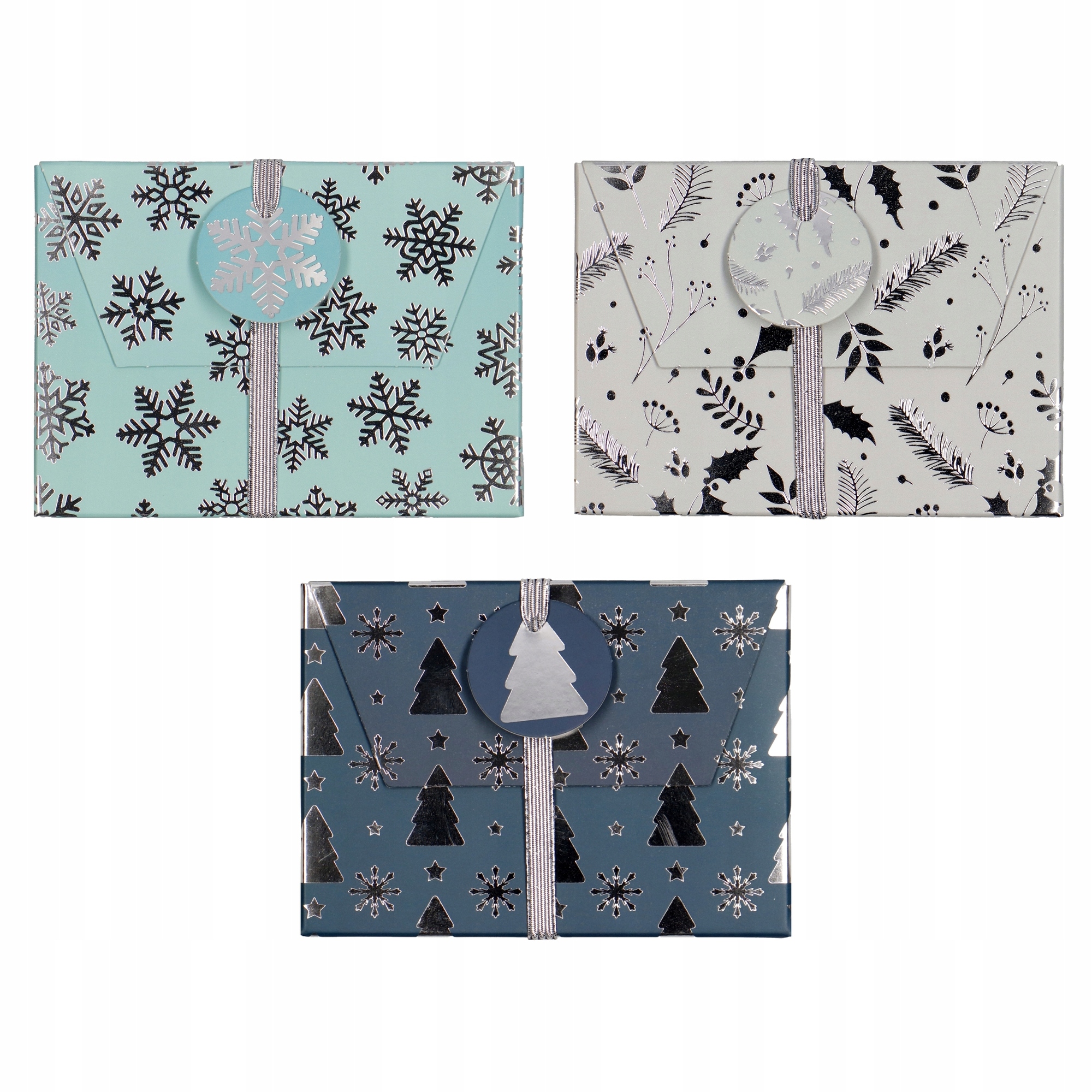 Pudełka na karty podarunkowe gotówkę 3 sztuki pudełeczka sztywne, wykonane z kartonu elegancki wzór świąteczny zdobienie wykończone hot-stampingiem - folią metaliczną świetny sposób na ofiarowanie gotówki, karty podarunkowej lub wszelkiego rodzaju voucherów 3 sztuki w zestawie...