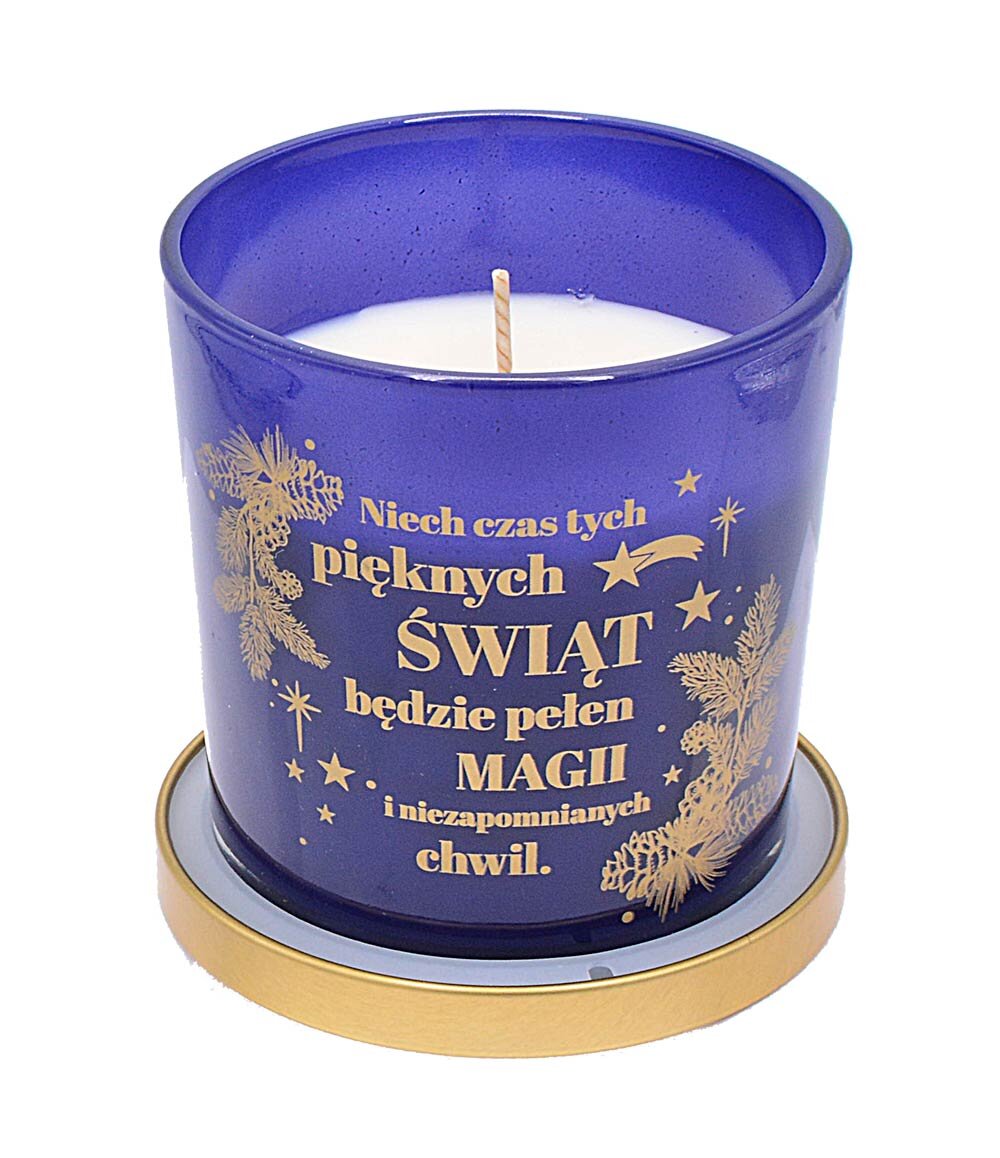 Zapachowa świeca o aromacie kaszmiru ZS-002 "Niech czas tych świąt będzie pełen magii" Świeca zapachowa w szkle to doskonały sposób na wprowadzenie świątecznego nastroju. Szklane opakowanie jest ozdobione inspirującymi tekstami, co czyni świecę idealnym pomysłem na prezent. Świeca uwalnia do 30 godzin wspaniałego aromatu. Świeca jest wykonana z najwyższej jakości wosku sojowego, gwarantuje długi i równomierny czas palenia, zapewniając jednocześnie czyste spalanie. Zawiera naturalny knot bawełniany i olejki eteryczne. Specyfikacja: czas palenia: 30h aromat: kaszmir waga: 400 g wys. 9 cm, śr. 8 cm okazja: Boże Narodzenie