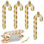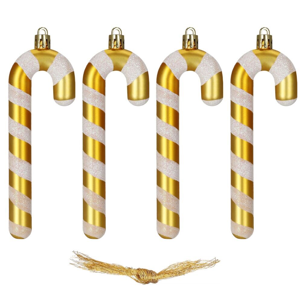 Lesklé a třpytivé vánoční ozdoby ve tvaru zlatých cukrových hůlek dodají stromku elegantní a moderní vzhled. Jsou vyrobeny z nerozbitného plastu, takže jsou lehké a bezpečné. Díky poutku a přiloženému provázku je snadno zavěsíte kamkoli. Rozměry 14 × 1,5/4,5 cm z nich dělají výrazný, ale stále jemný dekorativní prvek.