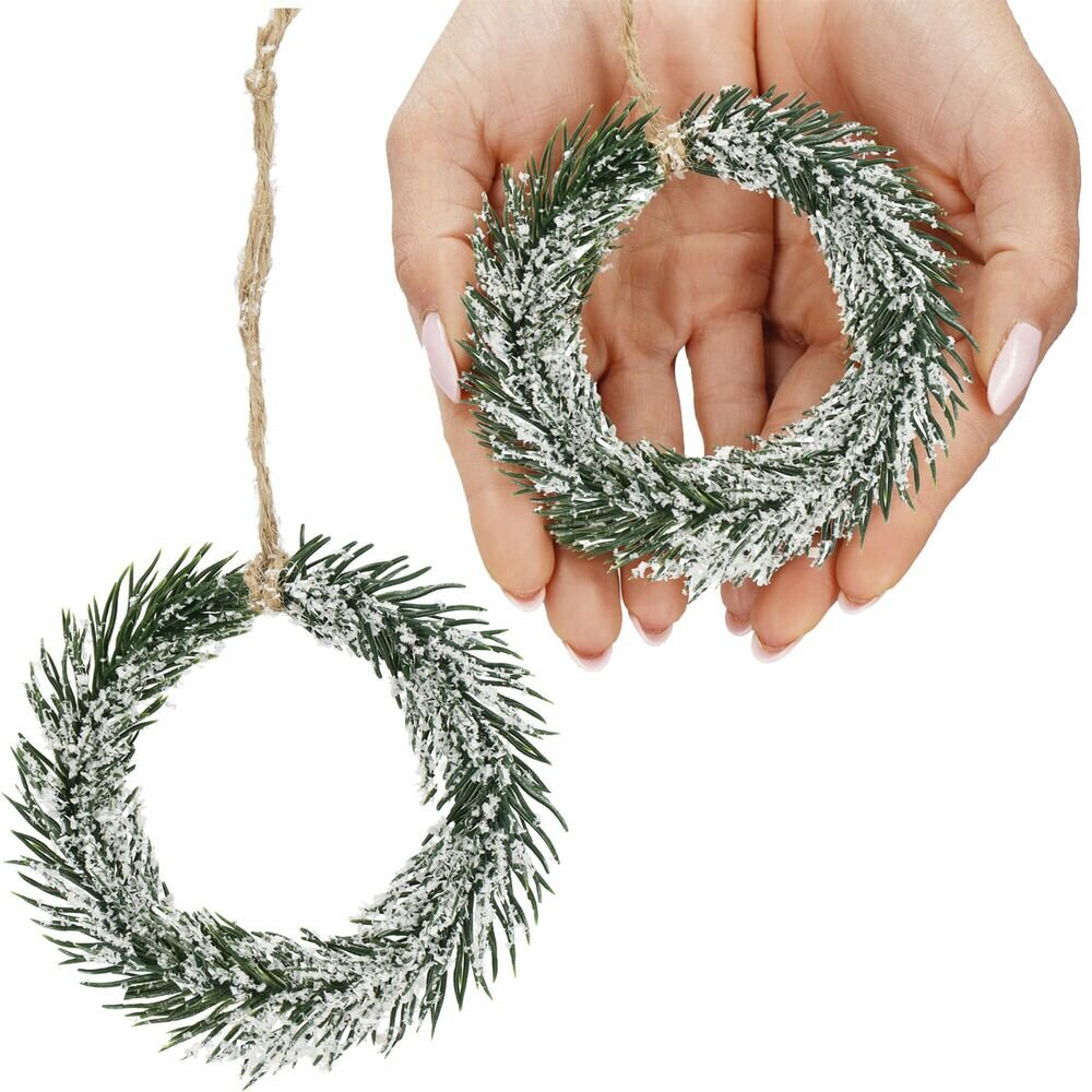 Věneček s námrazou a s jutovým provázkem na zavěšení. Průměr 10 cm, kvalitní, odolný materiál, krásný vzhled. Ideální jako ozdoba vánočního stromečku nebo jako vánoční dekorace.