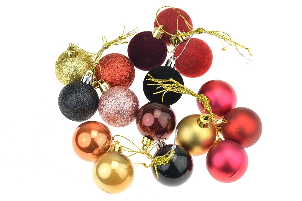 Vánoční kouličky, zlatá a purpurová barva - Set 16ks 40mm