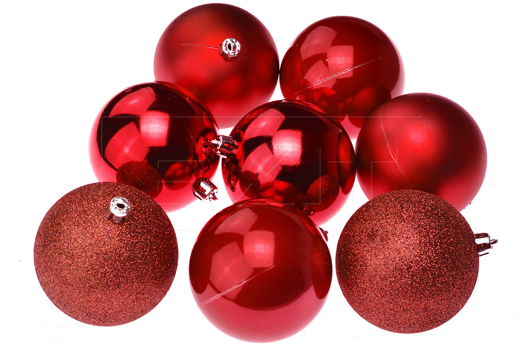 Vánoční koule na stromeček FLORA (8cm) 8ks - Červené