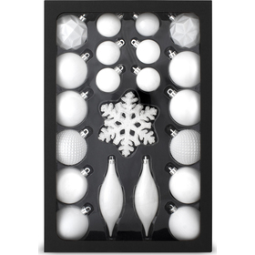 Sada 25 kusů vánočních ozdob v tradiční bílé barvě
