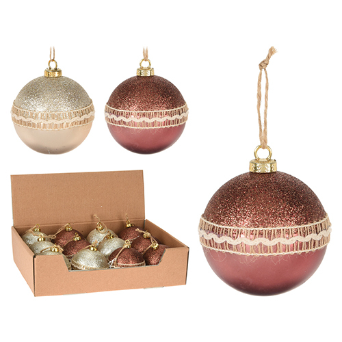 Sklenená guľa zdobená jemnými glitrami- mix farieb. Dekor vianočnej gule je veľmi elegantný a hodí sa na každý vianočný stromček. Priemer vianočnej gule je 80 mm. číst celé