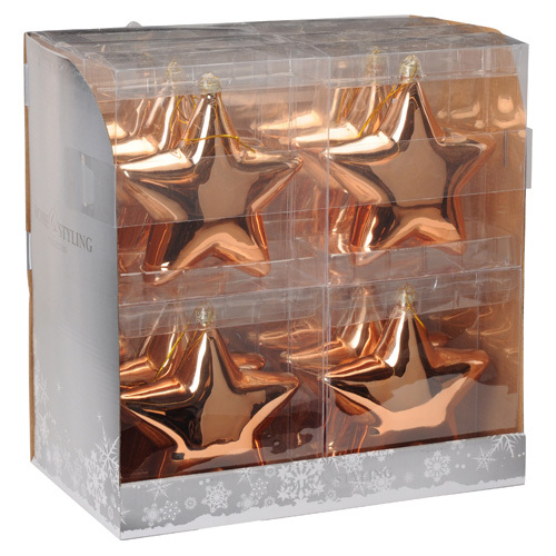 Vánoční ozdoba závěsná ve tvaru hvězdy. V měděné lesklé barvě. Velikost ozdoby 150mm. Klasická ozdoba na Váš vánoční stromeček.