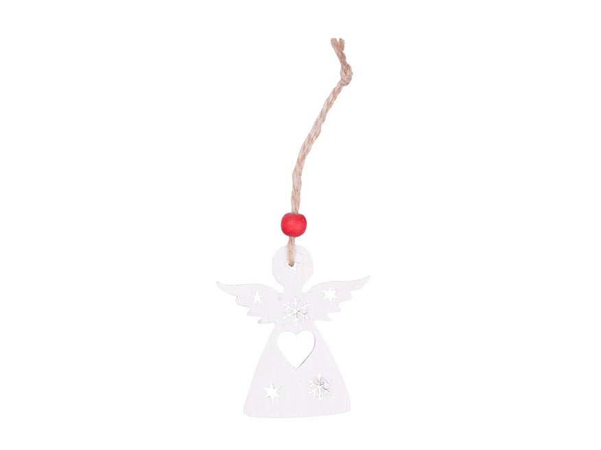 Dřevěný bílý anděl na zavěšení. Krásný závěs anděl je opatřený provázkem s korálkem na zavěšení. Můžete ho zavěsit na stromeček, do okna nebo na dveře. Zkrášlí tak váš interiér, a umocní vánoční atmosféru.
