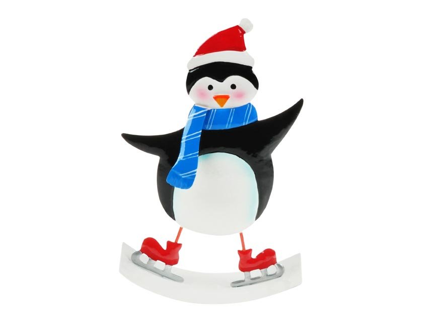 Tučňák plechový barevný na podstavci. Dokonalý vánoční doplněk do každého interiéru. Dekorace je barvená a houpe se.