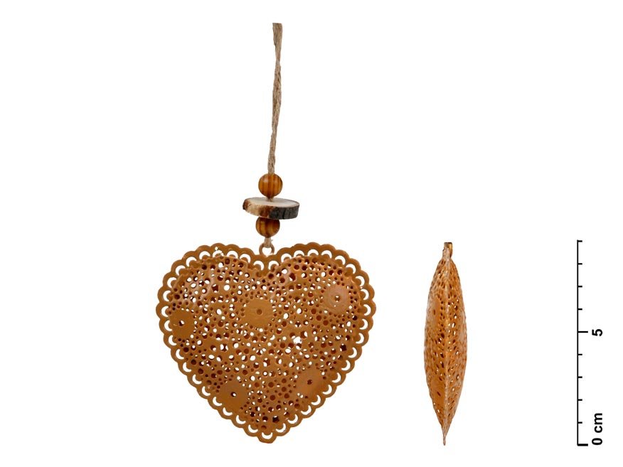 Vánoční plechové srdce, hnědé barvy s mini dírkami a 3D efektem