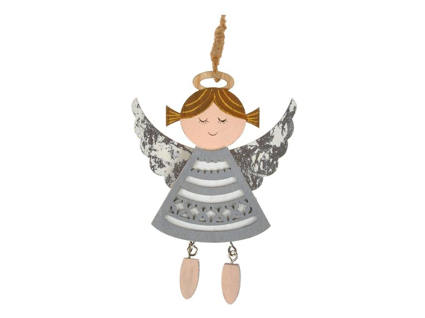 Vánoční dekorace anděl ve stříbrné barvě na pověšení. Vyrobená převážně ze dřeva. Vánoční dekorace, která zkrášlí jak interiér, tak i exteriér. Můžete ji zavěsit na vánoční stromek, okno a vchodové dveře, nebo ji dát jako dárek vašim přátelům a rodině.