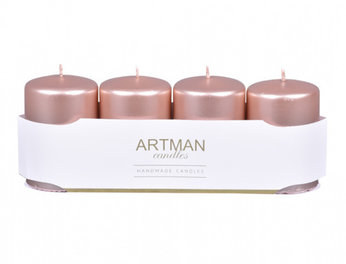 Svíčky Pudrově růžové metalické 4 x 8 cm - 4 ks