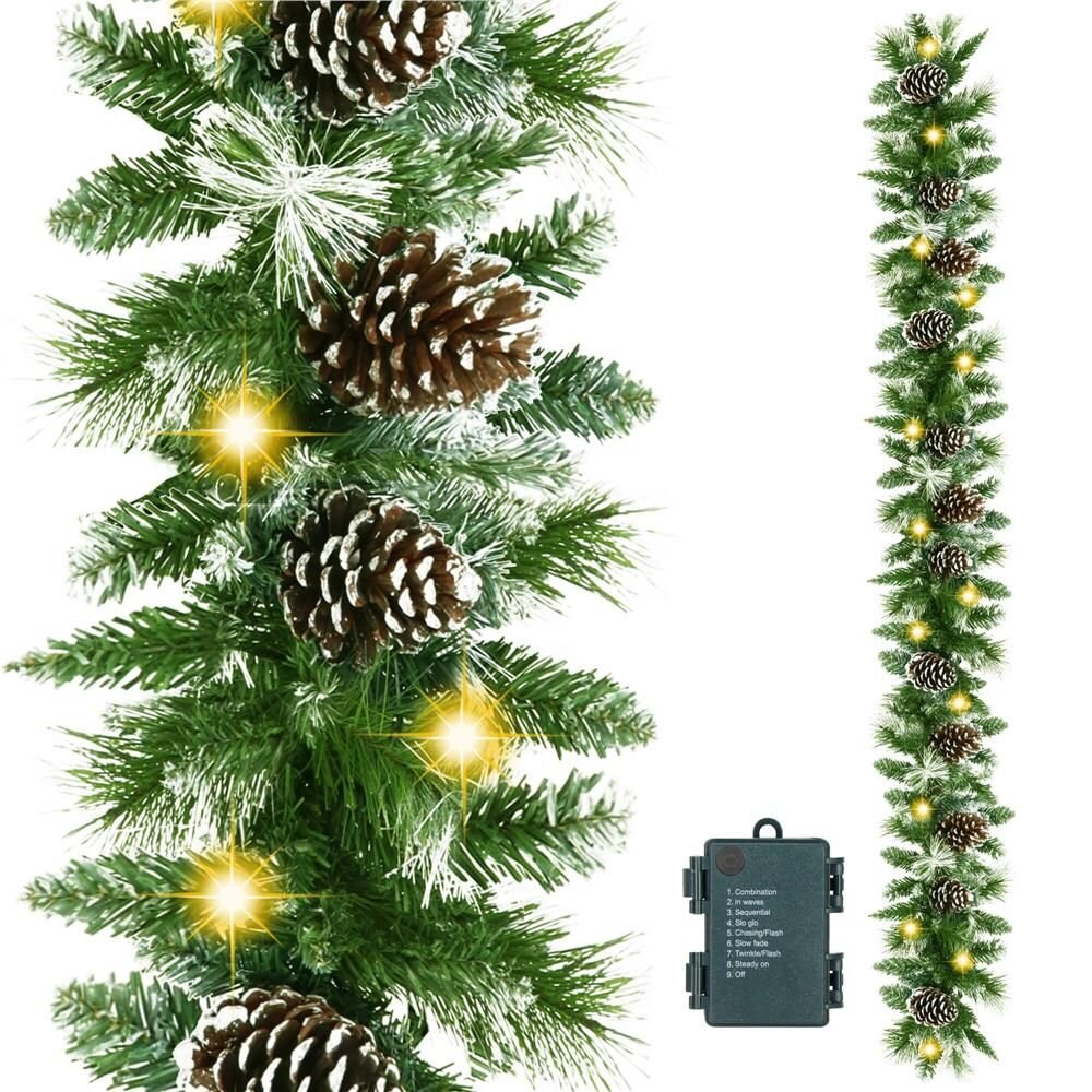 Prémiová girlanda z umělých větviček se šiškami a LED osvětlením. Délka 2,8 m, šířka 40 cm, 50 LED diod napájených na baterie. Řetěz má velmi hustou skladbu větviček připomínajích pravé jehličí. Výborně se doplňuje o další dekorace, snadno se tvaruje i napojuje. Osvětlení má 8 režimů svícení. Tato vánoční dekorace bude vypadat skvěle, ať ji dáte na stromeček, omotáte kolem zábradlí, trámů nebo použijete jako základ pro vánoční aranžmá.