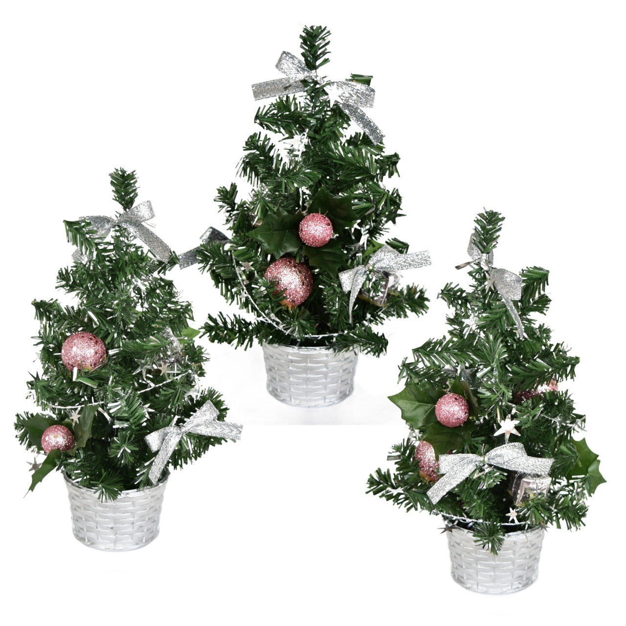 Oslavte tuto vánoční sezónu s naším exkluzivním setem 3 ručně zdobených vánočních stromečků, které ukazují kouzlo a eleganci. Tyto stromečky v růžovém a stříbrném provedení jsou ideální pro vytvoření magické atmosféry ve vašem domově. Každý stromeček je vyzdoben kouličkami, dárečky, mašlemi a řetízkem, které dodávají jedinečný nádech vánoční radosti. Parametry produktu: